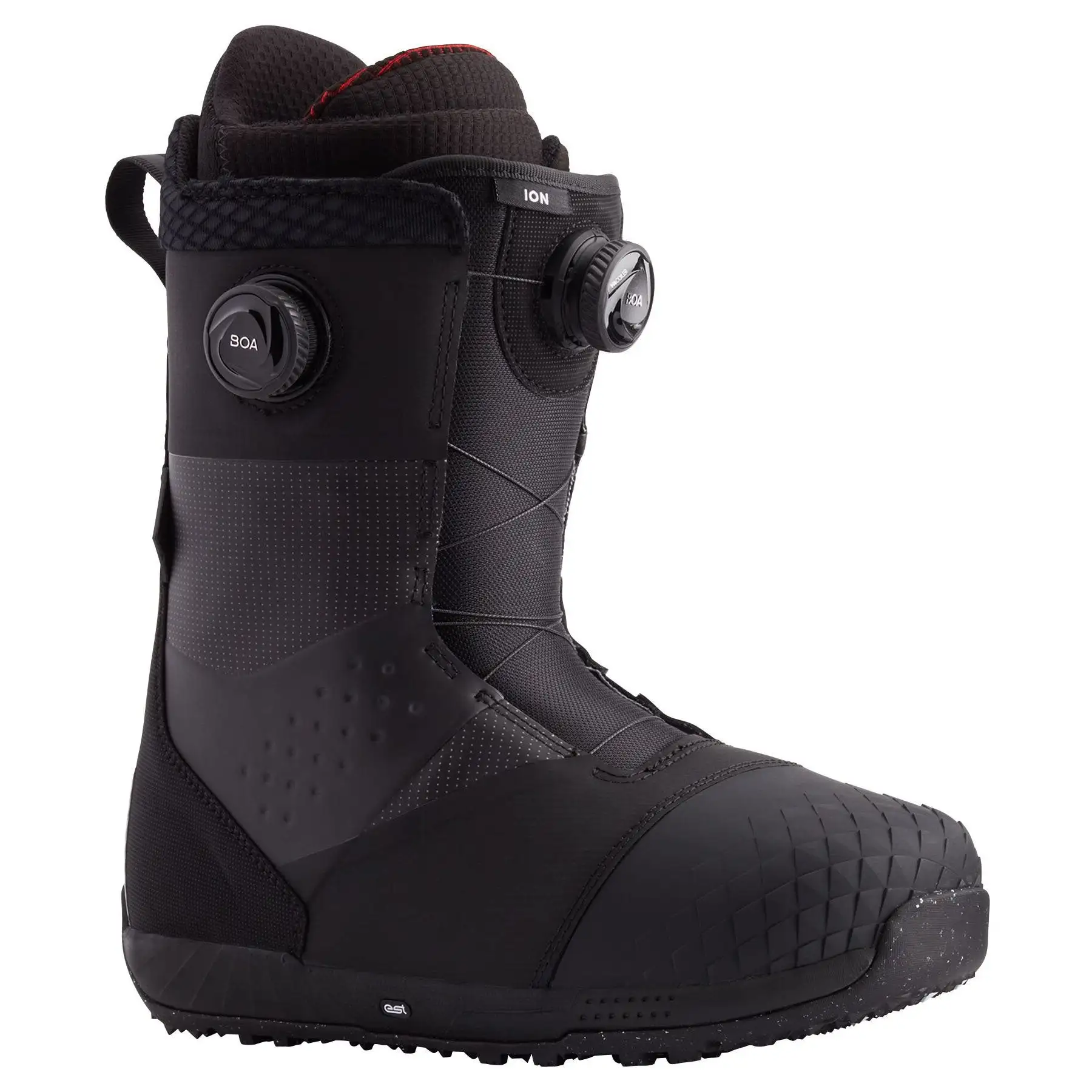 The 2023 Burton Ion Boa snowboard boot is a favourite of the Burton team for its stiff flex and total comfort resulting in an incredibly lightweight, high performance, precise feeling boot that supports aggressive riding all over the mountain. Ride harder for longer with the AutoCANT EST soles naturally aligning your lower body for reduced fatigue, while the ReBounce tech keeps you warm by reflecting heat back to your feet, as well as absorbing impacts from aggressive riding. For hard charging riders who don’t want to sacrifice comfort, the Ion is always a top pick.
