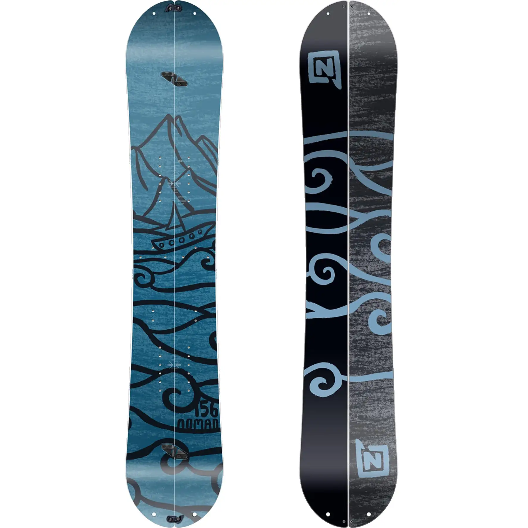 If you want to get out there and start earning your turns, the 2023 Nitro Nomad Splitboard is one of the best ways to make it so. As one of the most affordable split boards on the market, you don’t have to worry anymore about having to fork out your entire life savings for a quality splitboard. A Flat-Out Rocker profile with added Power Pods make the ride down a dream with a not too aggressive feeling underfoot but is still able to ride effortlessly in both powder or icy conditions. Fully fitted with all the same splitboard hardware as the highest priced splitboards on the market, the Nomad is the perfect introduction to your world of splitboarding.